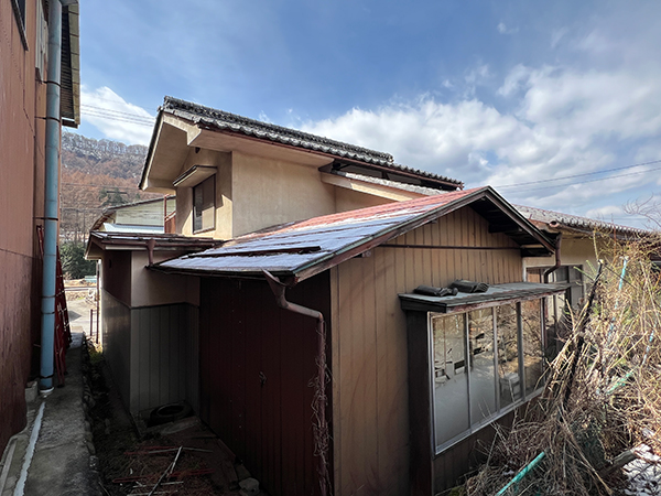佐久市街地から富岡へと続く富岡街道(コスモス街道)から少し入った所に位置する本物件。内山地域の中でも平坦な場所で日当たりが良い。秋にはコスモス祭りが開催され、散歩を楽しむのに良さそうだ。近くの内山峡には姫岩、屏風岩など観光スポットがあり、初谷温泉や荒船の湯など日帰り入浴が出来る温泉もある。敷地は小さいながらも菜園スペースがあり、北側には物置がある。建物の部屋数は和洋合わせて7部屋と多く、定住も検討できる。1階のトタン屋根から雨漏りがあり、天井や床など改修が必要。リフォームが前提の物件になるのでDIYが好きな人にオススメの物件。