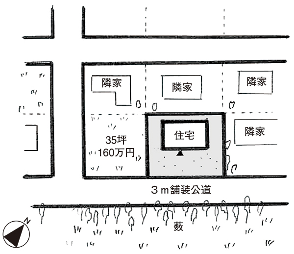 東側が幅約3mの舗装公道に接する。