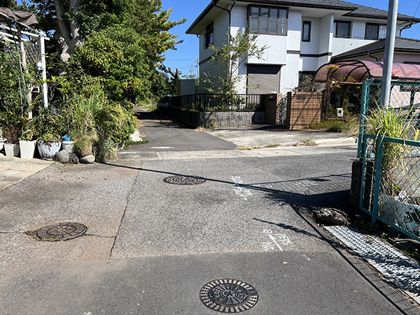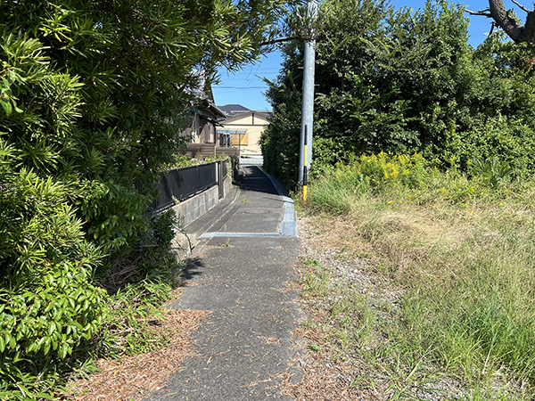 西側が幅約2.5mの舗装公道に接する