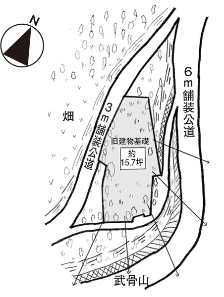 標高こそ480mほどでそれほど高くはないが、物件周辺に幾重に連なる山々の景観からは「天空」という言葉が似合うロケーション。物件近くにも「天空の〜」が付く施設やお店あるほど。南側には秩父のシンボル・武甲山を遠望する。以前建っていた15.7坪の建物基礎が残っており、再利用しても良いだろう。道路は農家しか通らず、外からの視線も殆ど入ってこない。集落水道が引込まれているのも嬉しい限り。喧噪から開放できる遊び基地にはもってこいだ。