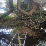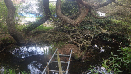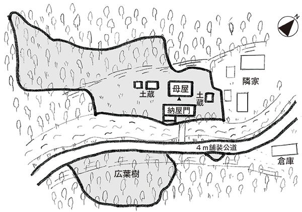 南東側が幅約10mの川を挟み4mの舗装公道に接する。