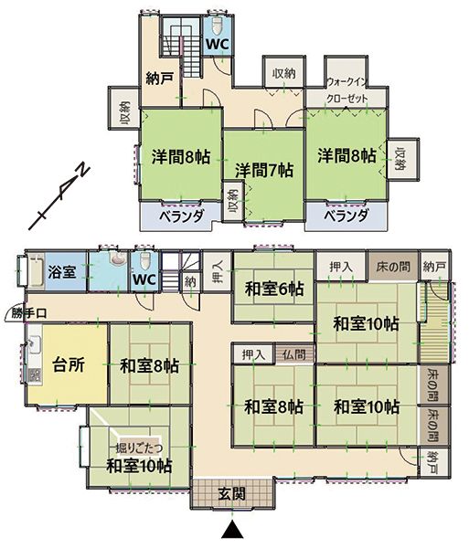 岩手県最南の一関市藤沢町。山間の静かな公道から川の橋を渡って納屋門を潜る粋なロケーション。畜舎、作業場、座敷まである納屋門と、蔵まであるとはその昔は豪農(有力者)の邸宅だったたことがうかがえる。母屋は24年前、現代風の純和風住宅に建て替えられている。檜や欅をふんだんに使った真壁造り。下がり棟の反り、出し桁、書院、雪見障子、ペアガラスなど意匠にもこだわっている。もちろん手直しは要らない。2棟の蔵は資金的余裕があれば充分復活できる状態だ。奥深い森のなかだが菜園作りもできるくらい暗くはない。敷地の山林は広葉樹で薪の調達もできる。専用の橋を渡っていく住宅なんて珍しく、話題性のある物件だろう。