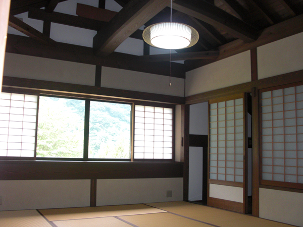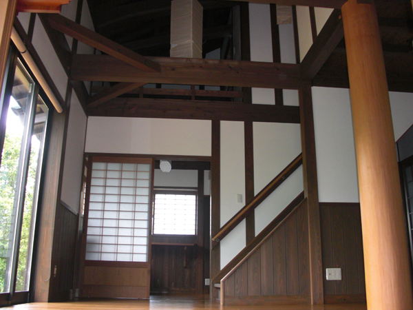 物件から一番近い人家までは2kmくらい離れている、当にポツンと一軒家だ。積雪時、前面道路は除雪がされないのが残念だが、それくらい奥まった場所。住宅は築20年近く経過しているが殆ど使っておらず一見して新築の様相。雪国に多く見られる1階を車庫、物置にし、2階、3階が居住スペースの造り。材は地元の杉、檜を使われ、白の漆喰壁との調和が美しい。玄関ホールは広く吹抜け。IHコンロ、食洗器、ペアガラス、ジェットバスなど贅沢仕様がたくさん。飲用水は沢水と雨水を自家滅菌処理で使用。桜が植わる敷地はきれいに管理され、広く菜園作りはもちろんも舗装部分で10台は置ける。4坪の物置もしっかりしてありがたい。