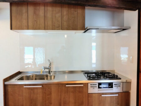北杜市白州町上教来石は、長野県との県境に位置する地域。白州町は、清流が流れ緑豊かな場所。本物件は、国道20号線と旧甲州街道の2つの道路に面している。周りは昔からの集落、空き家もちらほら見受けられる。建物は築年不詳だが、2024年10月にフルリフォームしているため、玄関を入ると木のいい香りがする。元の家の古材と、新しい材とが上手に使われ、趣のある仕上がりになっている。雰囲気は古民家風だが、快適に暮らせるような設備になっている。浴室暖房乾燥機、そして浴室を足元から温めてくれるシステム「床夏シャワー」が装備されているのは嬉しい。また、照明にもこだわっており、ゆったりくつろぐことができる家だ。