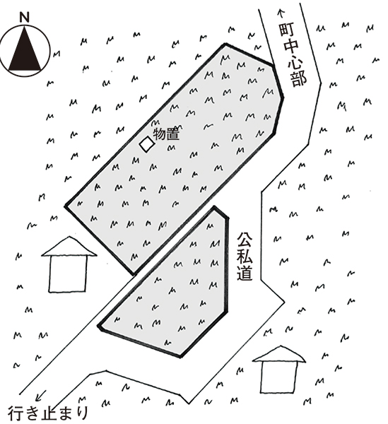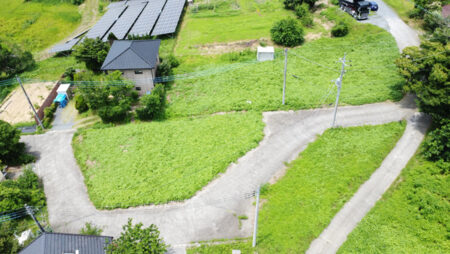 那須連山から太平洋へと流れる那珂川は、鮎釣りの名所として古くから知られており、その中でも茂木町にある簗場「大瀬やな」は漁獲量日本一を誇るまさに鮎の聖地。そこから下流に約5km進んだ場所にあるのが今回の土地で、近隣には住宅が点在する分譲地にもなっている。登記現況ともに宅地となっているが見た目は原野で、建物1棟と家庭菜園を楽しむスペースに転用する方法にピッタリな土壌。なお3筆ある宅地を3分割して販売も可能で、その際には私道持分も売却も出来る。