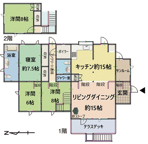 木造亜鉛メッキ鋼板葺2階建