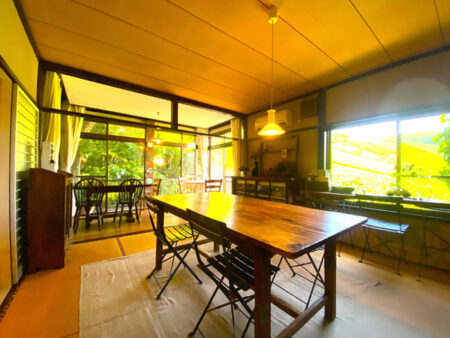 富士山や駿河湾といった絶景やグルメを堪能できる静岡市清水区。物件はJR静岡駅から車で20分。東京から一時間半とアクセスが良い。物件は閑静な住宅街に、隣家より一段高く立つ。建物周囲は木に囲まれているため、周りの視線が気にならない。リフォーム済みの建物は美しく、オーナーが家族で塗装したキッチンの壁は、お洒落な雰囲気。ベランダは風通しも良く快適に過ごせる。一番の魅力は美しい景観だ。正面からは富士山が見え、背面には茶畑が広がる。季節によって様々な風景を楽しめる物件だ。
