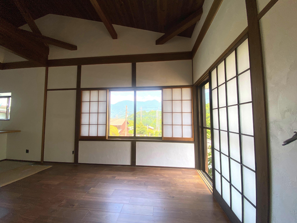 南部町は山梨県の最南端に位置する山々に囲まれた自然豊かな町。子育て支援に力を入れているので自然に囲まれながらのんびりと子育てをしたいという移住者が多い。加えて中部横断自動車道の富沢IC〜六郷ICが無料区間となっているため都市までのアクセスもよく田舎暮らしをしながら街へ気軽に遊びに行けるのも南部町の魅力だ。築50年の物件は現在フルリノベーション中である。緑豊かな自然や古民家の特徴を残しつつ新たな歴史が刻まれようとしている。自然の水が注がれた池にはカニやメダカなどが訪れる天然ビオトープで現代の暮らしにあった住みよい家と自然が共存する贅沢な空間である。