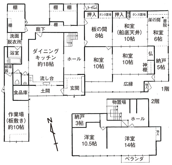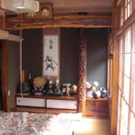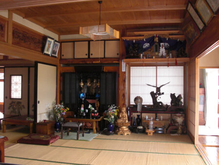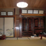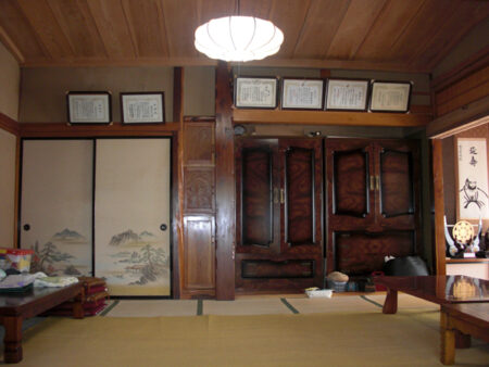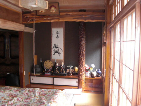 たくさんのふるさと会員が田舎暮らしを楽しんでいる上郷町。物件は、郷愁漂う無人の岩手上郷駅から500mほど。静かな集落に一際異才を放つ和風住宅。南側道路沿いには板塀が据えられ、正面入り口は重厚な扉の門が構える。玄関前にはよくぞここまで伸ばした、という感じの五葉松が植わる。多彩な植栽と石作られたお庭は贅沢だ。裏(北)側は広く菜園用地。住宅は太い欅材で組まれた堅牢さそのもの。書院、雪見障子、繊細な欄間など意匠も素晴らしい。床の段差が多い印象はあるが、各部屋が広々しているので気にならない。全体的に大きな補修は要らない。西側には車庫と使える土間があり。お庭、菜園用地、立派な住宅と、3方良しの物件。