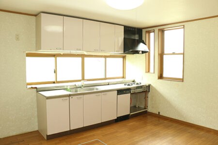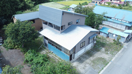 山形県舟形町は県北の最上地方に位置し、人口5,000人未満の小さな町。松尾芭蕉の俳句でも詠まれた最上川が町内を流れ、若鮎釣りや縄文遺跡が残る里として、どこまでも長閑な風景が広がっている。積雪2m程度と豪雪地帯にある影響で、この地域では3階建住宅は珍しくなく、今回の物件も傾斜屋根と1階がRC基礎の車庫兼物置の構造。2階と3階にそれぞれキッチン・トイレ・浴室が配置され、2世帯住宅を前提として設計されたのが垣間見える。敷地には母屋の他に2階建倉庫もあり、手直しは必須だが収容力は申し分ないだろう。買い物には車で約20分の新庄・大石田・尾花沢市街地へ向かうのが便利だ。