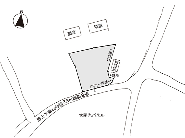 南東側が幅約3.8mの舗装公道に接する