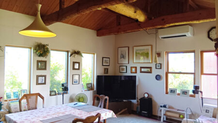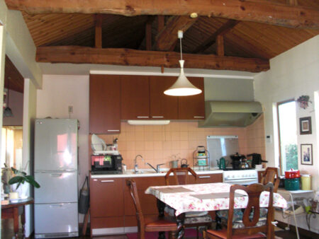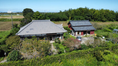 圏央道神崎ICには東京駅八重洲口を結ぶ高速バス停もでき、都内や埼玉方面へのアクセスが非常に便利になった。物件はそこから車で5分、水郷地帯を象徴する広大な田園に建つ。隣家が無く、外からの視線は全く気にならずストレスは感じない。566坪の敷地は全体的に平坦で、陽射しを遮るものはない。菜園、果樹はもちろん養蜂も可能だ。自家井戸があるのも嬉しい。民家は大きな屋根でどっしり構えた化粧造り。全居室は廊下で行き来でき、プライベート空間も作れる。水回りは現代的に改修されてきれいはもちろん、お洒落さも漂う。20坪の作業場はしっかりしたコンクリート土間で、車庫や多目的に活用できる。自分達だけの理想郷にできる物件。