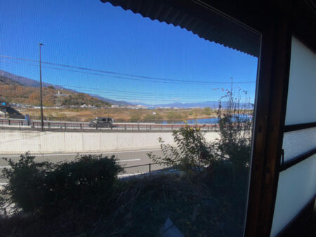 富士川町は甲府盆地の南西部に位置する雄大な富士川と緑豊かな山々に囲まれた自然豊かな町だ。物件は富士川橋近くの高い位置に建ちオーナーが約20年前に購入しDIYをして楽しんでいた。平屋だが五部屋ある為、家族で利用するも良し、仲間を呼んで大人数で利用するも良し。最大の魅力は眺望である。窓を開ければ日本三大急流の富士川が流れ奥には南アルプス等の山々が連なり圧巻の迫力だ。夏には市川三郷町の花火も見えるのでオーナーはワインを飲みながら景色を楽しんでいるそうだ。畑もあるので家庭菜園もできる。オーナーは隔週で物件に訪れていたため夢の二拠点生活を叶えたい方は是非検討いただきたい。