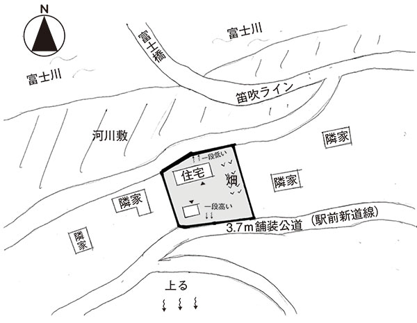 オギノ富士川店へ約3.7km、セブンイレブンへ約450m、病院へ約5.6km、郵便局へ約1.6km、まほらの湯へ約5.6km、役場へ約4.4km