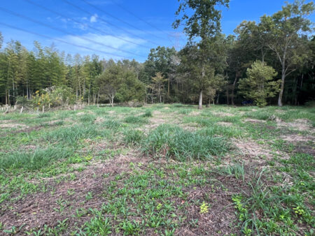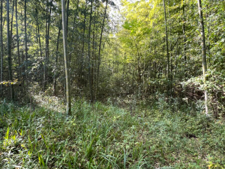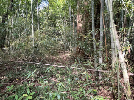集落を抜けた畑が広がる高台。その畑を抜け雑木林に入って行くと、別天地のように明るく空が開き、広い空間が出現する。そこは竹が伐採されている約1800坪の2区画だ。住宅を建てるのはもちろん、簡易建物を置き週末畑や遊び場、ドッグランなどとしての用途でも良い。外から干渉されることもないので、自分達だけの空間が持てる。進入路は未舗装だが公衆用道路であるのも嬉しい。竹林独特の雰囲気が好きな方にも薦めだ。2区画まとめて購入してくれるのも大歓迎。