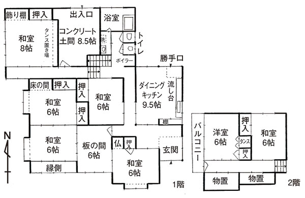 山間や田園地帯をディーゼルで走る釜石線。程良い振動が郷愁を誘う。遠野駅から釜石方面へ2つ目の岩手上郷駅から400m。東側が静かな通りに面した2階家。築60年が経過しているがまだ充分使える。和室は懐かしい昭和の塗り壁。敷地の傾斜を上手く利用して建てているので階段の段数が少ない。8部屋と土間まであるので大人数で使えるはもちろん、仕事や趣味で物をたくさん置くことも可能。駐車場は普通車1台。土間から西側敷地へ行き来ができるも便利だ。コンビニが500mにあるのは何かと嬉しい。駅から歩けるのはとにかくありがたい。大きな改修費用のかからないお手頃物件だ。