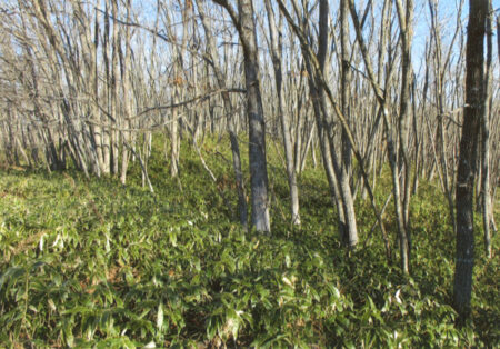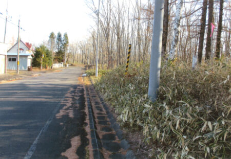 国道391号線(通称:パイロット国道)と国道241号線(通称:阿寒横断道路)が交わる鈴蘭交差点は、付近にスーパーコンビニ飲食店が多いことから、町内でも交通量の多い場所。そこから少し東側に進むと、低層住宅が建ち並ぶ閑静な鈴蘭分譲地となっており、弊社を通じてご売却・お買い求め頂いた方も多い人気ゾーン。今回の物件は椎茸原木栽培が出来るナラの木が占める広大な山林で、若干起伏のある平坦な地形が続くため、住宅用にいくつか伐採すれば、広葉樹とクマザサに囲まれた雰囲気の良い別荘に生まれ変わるだろう。定住用住居を新築したり、キャンプ用地等様々な活用方法が期待出来そうだ。