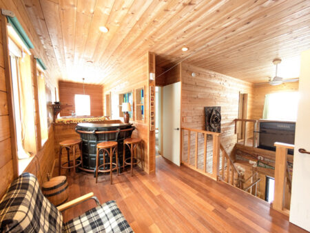 福島県南部にある羽鳥湖高原は別名「東北の軽井沢」と呼ばれるほど人気のリゾート地で、標高が約900mと高いため夏は避暑地として、冬はスキーで楽しむことが出来る別荘地だ。最寄り駅は東北新幹線の発着する新白河駅で、東京からも仙台からもアクセスしやすい環境で、週末気軽に訪れやすい立地とだけあって、人気が高まってきている。今回の物件は平和郷観光開発の分譲地で、別荘街では珍しく1階に普通車2台が入るガレージで、雪深い当地では1年を通じて住みやすい設備を完備。道路から2階玄関までの階段及びウッドデッキの修繕費用は、引渡し後に買主負担となるため予算に入れて頂きたい。