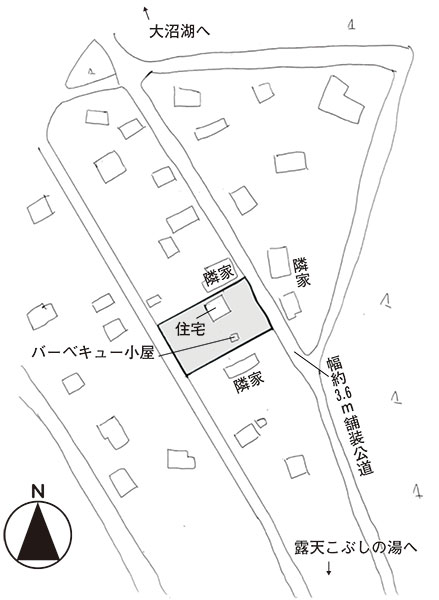 北東側が幅約3.6mの舗装公道に接する