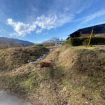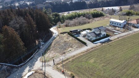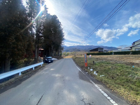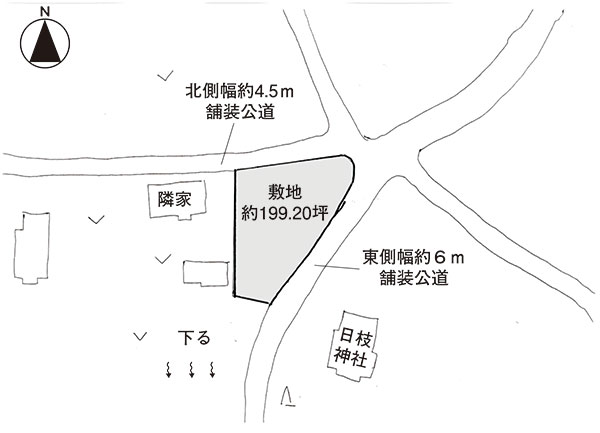 東側が幅約6.0mの舗装公道、北側が幅約4.5mの舗装公道に接する