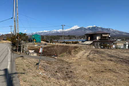 八ヶ岳連峰を一望する集落入口の日だまりの土地