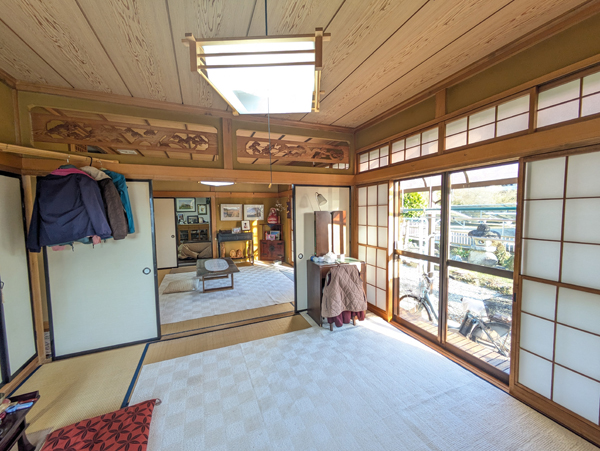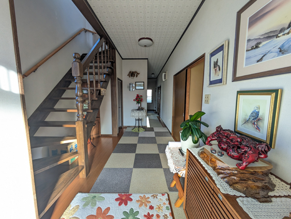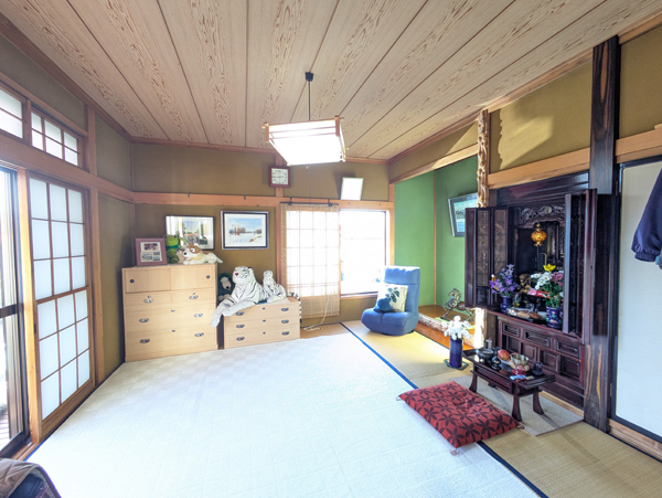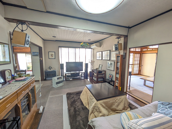 福島県棚倉町は東白川郡の中心地で、かつては棚倉藩(亀ケ城)の城下町として発展した歴史情緒を感じる街並みとなっている。中通りでは県南エリアに位置し、県内でも一年を通じて気候が温暖で、風と雪も少ないことから移住者も多い地域となっている。町中心部から鮫川村方面へ向かう道すがらの住宅地の一角にあるのが今回の物件。敷地は木造2階建の母屋、物置、カーポートのある縦列2台分の駐車場と南側の庭園がセットになっており、前面に遮る建造物がないため終日にわたり日当たりが良い。普段の買い物や駅・バス停までのアクセスも徒歩・自転車で完結出来るのは大きなアドバンテージだろう。