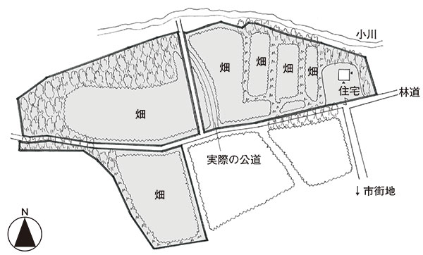 | 接道状況 | 南側が幅約3mの一部舗装公道に接する |
