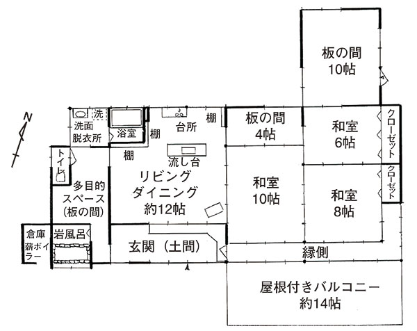 鮎釣りで知られる清流・久慈川の支流・久隆川も浅くとても清らか。その川沿いをどんどん北上し、最後は物件専用とも言える橋を渡った高台に建つ古民家。1300坪超の敷地は全体的に陽当り良好。納屋、車庫、動物小屋、薪小屋、池など設備が出来上がっているのは嬉しい限り。たくさんの農機具、機械も全てお譲り。軽トラとホンダカブはお譲り相談可能だ。築100程の古民家は大きな手直しは要らない。黒光りした小屋組を見せたのは古民家の醍醐味。勿論、薪ストーブ完備。ユニットバスと岩風呂の二つの浴室は面白い。14帖の屋根付きバルコニーは何かと重宝する。外からの視線は入ってこない、ワイルドさを求めるなら選択に入れるべき物件だ。