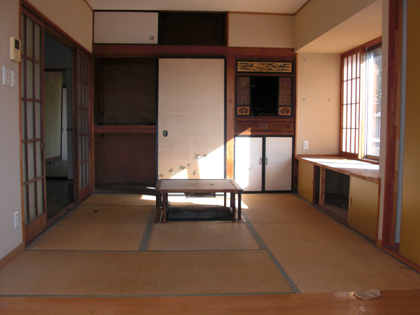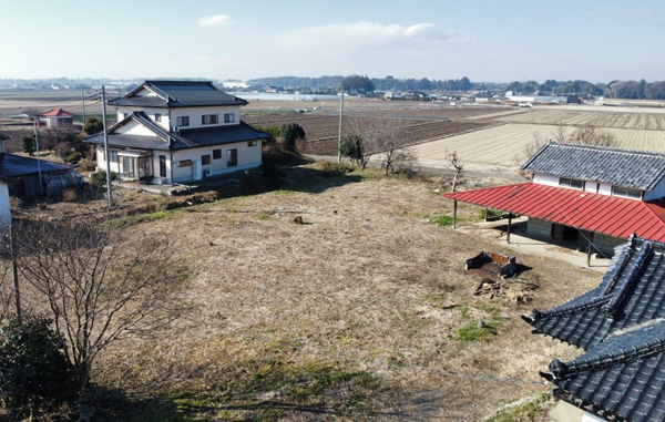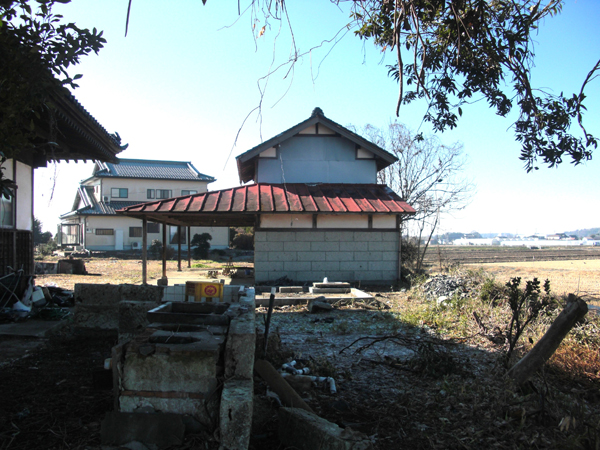 西側に田園が広がり、先には日光方面の山々を遠望する静かな集落の外れ。近隣とは程よく距離を持った寂しくないところ。母屋と倉庫は北側に寄せて建つので敷地の南側が開け、陽当りが良い。全体的に平坦なので使用面積も広く確保できる。菜園作りにも精を出せる。住宅は全体的に雨漏りと台所の直しが必須。ただ、化粧垂木、太くしっかりした檜や欅の柱、梁は素晴らしい。大黒柱は欅の8寸超だ。玄関の格天井、堀炬燵、雪見障子、ペアガラスな意匠も素晴らしい。改修する価値のある建物だ。大谷石の倉庫はしっかりしていてそのまま使える。下屋を大きく張り出しているので雨天でも作業場として使える。是非、再生してほしい価値ある民家だ。