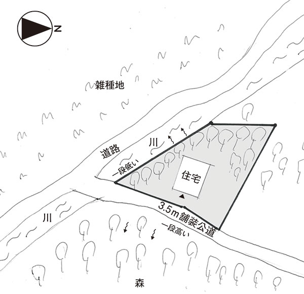 | 接道状況 | 東側が幅約3.5mの舗装公道に接する |