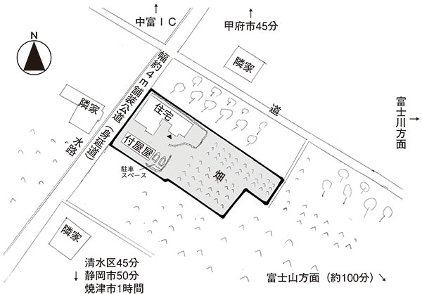 | 接道状況 | 北西側が幅約4mの舗装公道に接する |