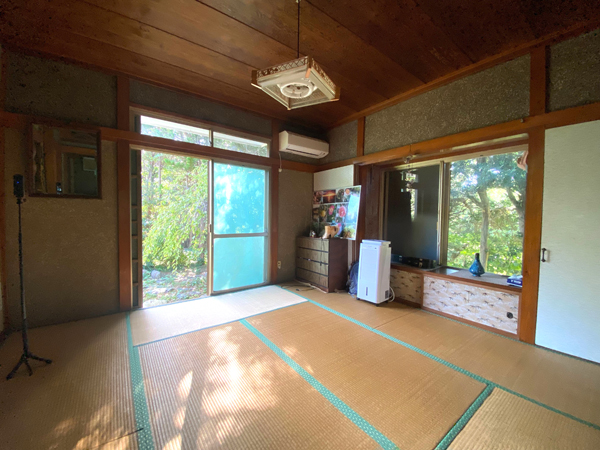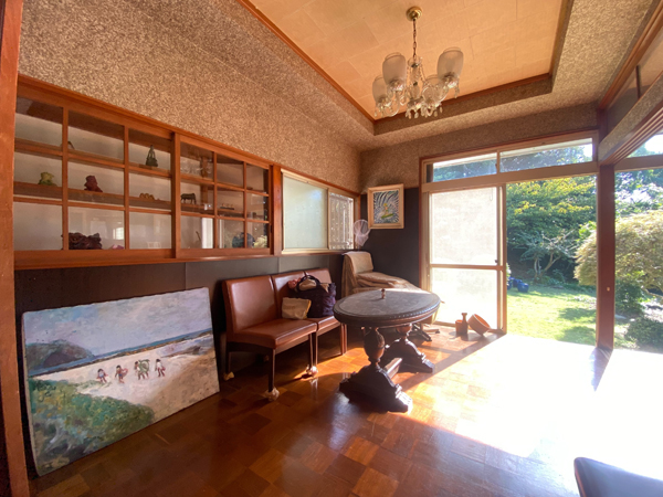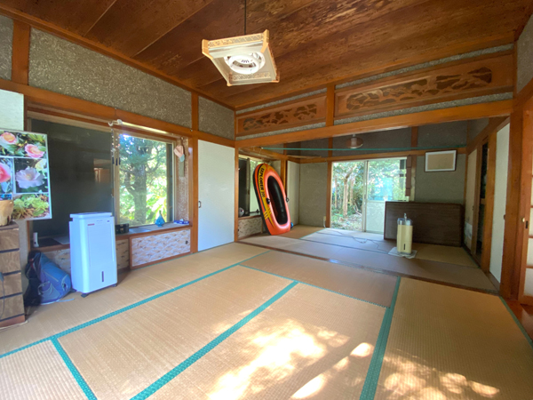 伊豆半島南部に位置する下田市は美しい海岸線と緑豊かな山々が織りなす自然環境に恵まれた町だ。日本の水浴場88選にも選ばれた真っ白な砂と青い海が特徴的な白浜海水浴場が広がり海ではサーフィン、ダイビングなどのマリンスポーツが楽しめるほか、ファミリー層の海水浴にも人気である。物件は白浜の高台を登ればたどり着く。50年前に購入した土地に家を建てオーナーが大切に管理をしている。室内は綺麗に使用され大きく直す所もなく様々な植物が咲く空間はまるで南国にいる様な空間になって いる。敷地からは白浜の美しい景色が見えるのでオーナーは毎年ここで初日の出を楽しんでいる。