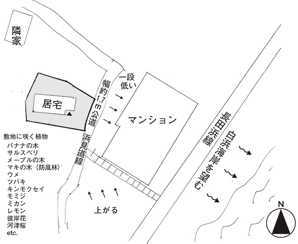 | 接道状況 | 南西側が幅約1.7mの舗装公道に接する |