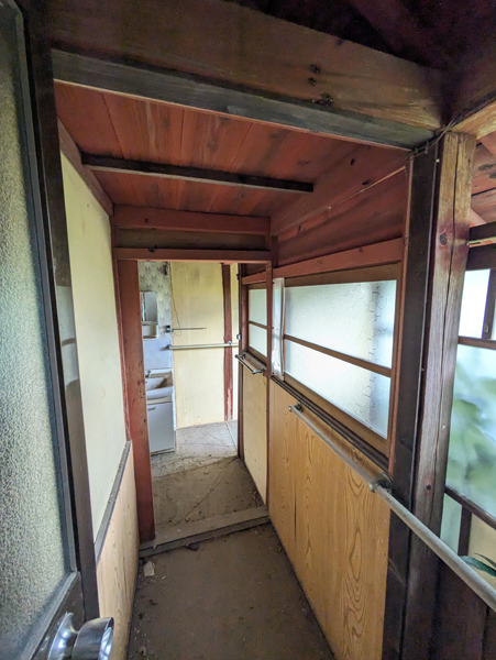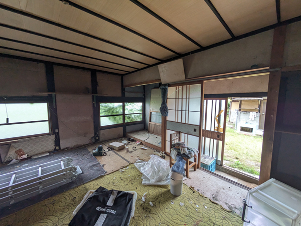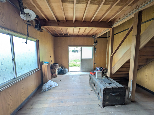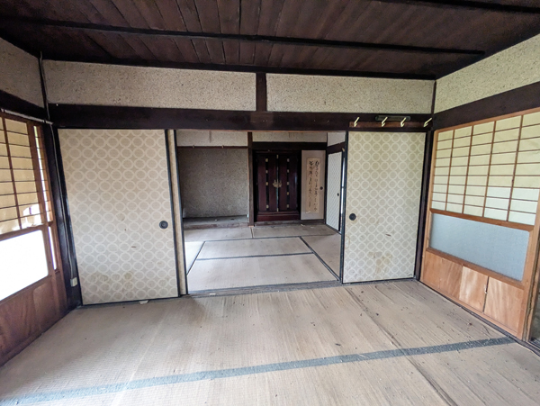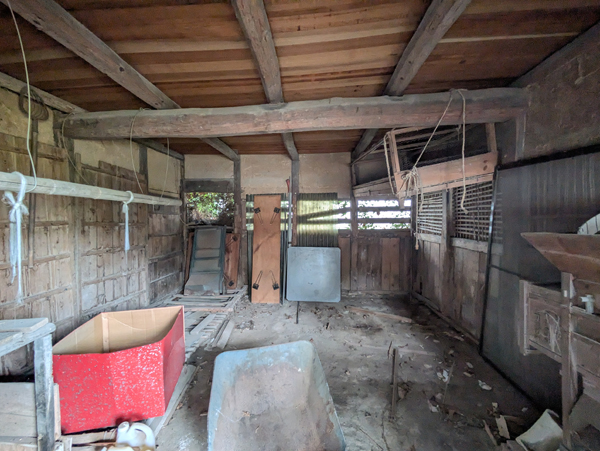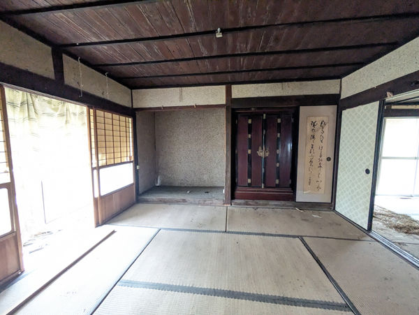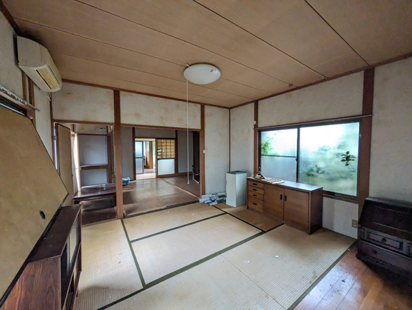 一級河川三篠川は広島市中心部へ流れる太田川の支流で、高低差も少ないため穏やかな川として親しまれている。そんな三篠川の土手近くにあるのが今回の物件で、南北に並列に4棟建物が並んでいるが、うち2棟は通り抜けが出来る構造のため、間取りは10DKととても広い。南側の平家建がメインの居住スペースで、水回り等もリフォームされているため快適に生活できる。北側の平家建は内外装ともに経年劣化が進行しているため、解体し更地後は駐車場等に転用した方が良いだろう。その隣の古民家は1階2階ともに物置小屋として使っているため、収納スペースにはかなりゆとりがあって使いやすそうだ。