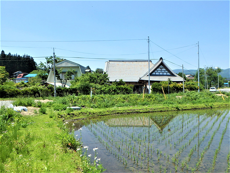 ▲遠野の農村地帯に残る曲り家物件。