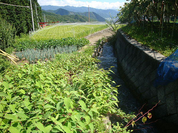 丘陵地にブドウ、果樹園が広がる山梨市牧丘町の、敷地内から富士山を望む土地。近隣は物件情報の多いところではないが、所々で都会からの移住者もあり、田舎暮らしにはちょうど良い。場所は県道杣口塩山線沿いに見える赤い鳥居のあるわき道を入ってすぐ。120坪の宅地はオーナーが古家を解体した土地。道路沿いに細長くある畑は、農地法のため新規就農を行うか(下限面積5,000㎡以上)建築計画を提出すれば所有権移転も可能となる。西側は農業用水路を挟んでブドウ畑、東側道路の向こうは山林、南は畑越しに富士山が見える。